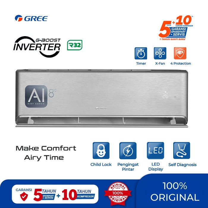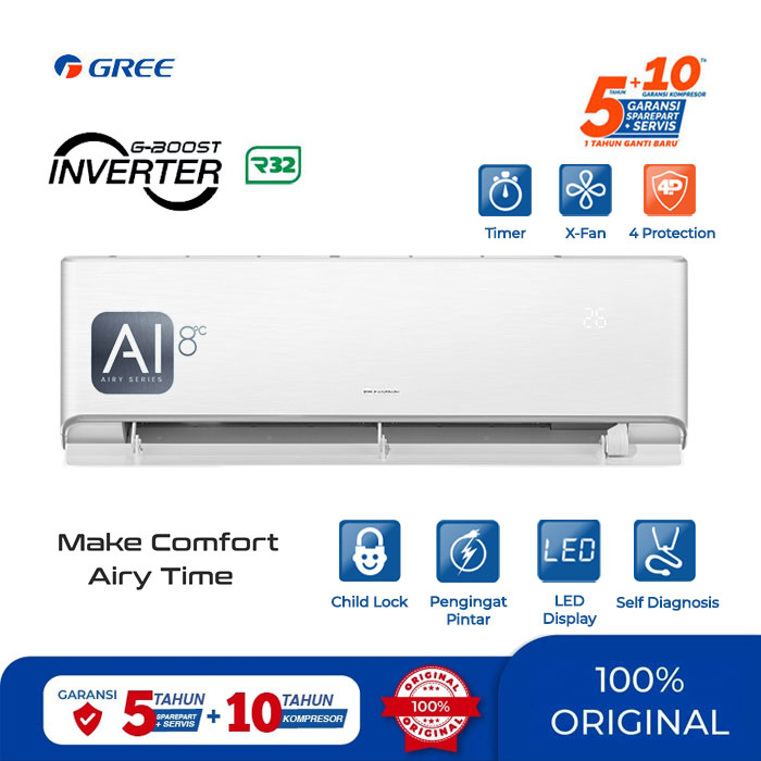Gree AC Split ( AC Dinding ) Inverter F1 Series 2 PK R32 1400 Watt - GWC-18F1 | GWC18F1S | 18F1