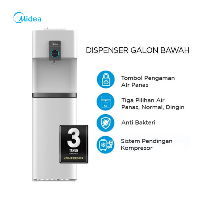 Midea Dispenser Standing Galon Bawah Anti Bakteri Putih - YD2036S | YD 2036 S