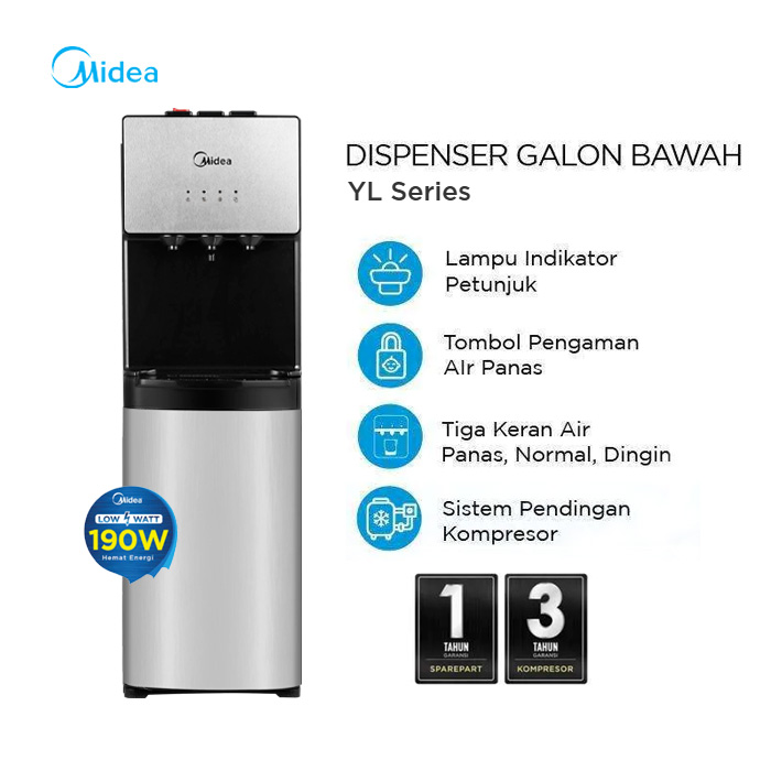 Midea Dispenser Standing Galon Bawah Kompresor Low Watt - Silver - YL1566S | YL 1566 S
