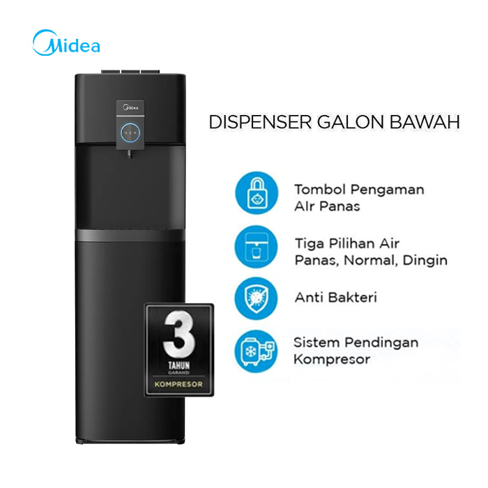 Midea Dispenser Standing Galon Bawah Anti Bakteri Hitam - YD2036BUV | YD 2036 BUV