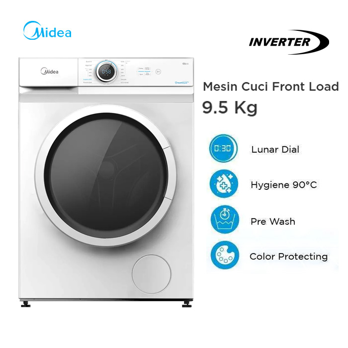 Midea Mesin Cuci 1 Tabung Front Loading Inverter 9.5 Kg - MF100W95BN | MF100-W95BN