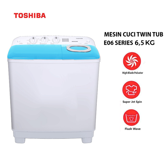 Toshiba Mesin Cuci 2 Tabung Twin Tube E06 Series 6.5 Kg - VH-H75MN-(WR) | VHH75MN(WR)