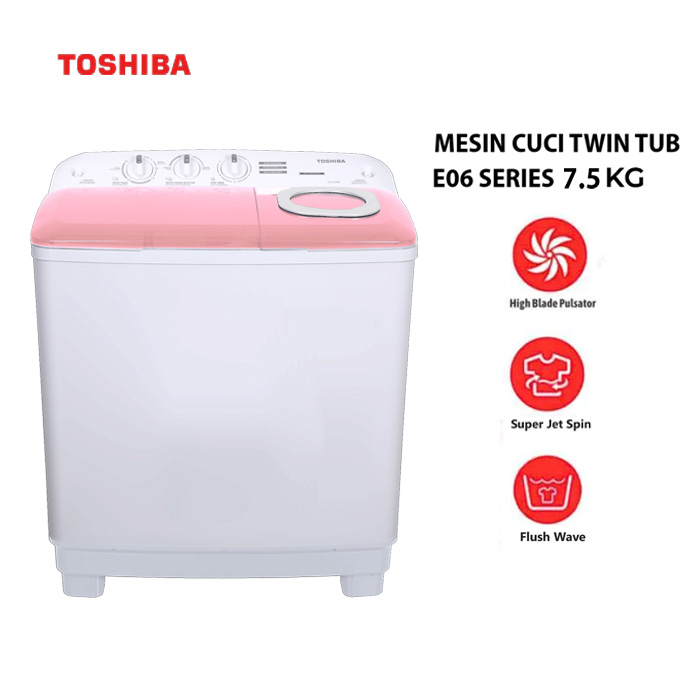 Toshiba Mesin Cuci 2 Tabung Twin Tube E06 Series 7.5 Kg - VH-H85MN-(WR) | VHH85MN(WR)
